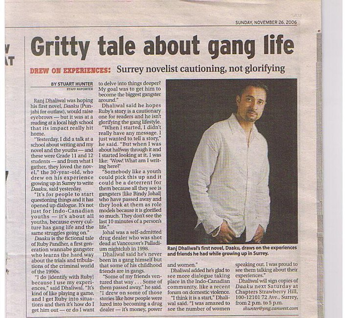 Posted on Gritty tale about gang life – The Province Newspaper The Province Newspaper November 26, 2006 By Stuart Hunter DREW ON EXPERIENCES: Surrey novelist cautioning, not glorifying. By: admin