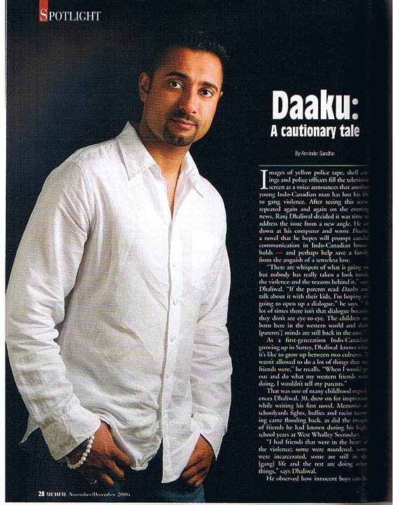 Mehfil Magazine spotlight on Ranj Dhaliwal and his novel DAAKU (GANGSTER).